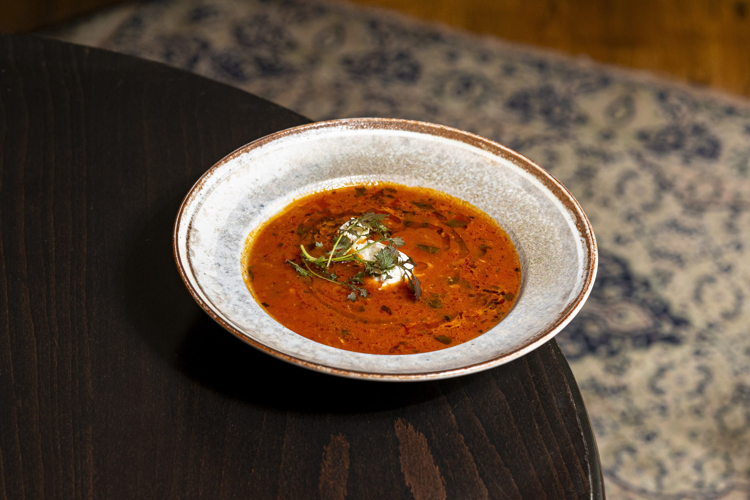 Artisan tomato soup, stracchino cheese